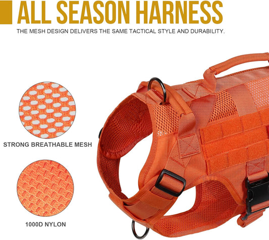 OneTigris - Tactical Dog Harness No Pull for Medium Dogs, Breathable Mesh Design, Service Dog Vest with Handle and Molle Bags, Adjustable Suit for Walking Hiking