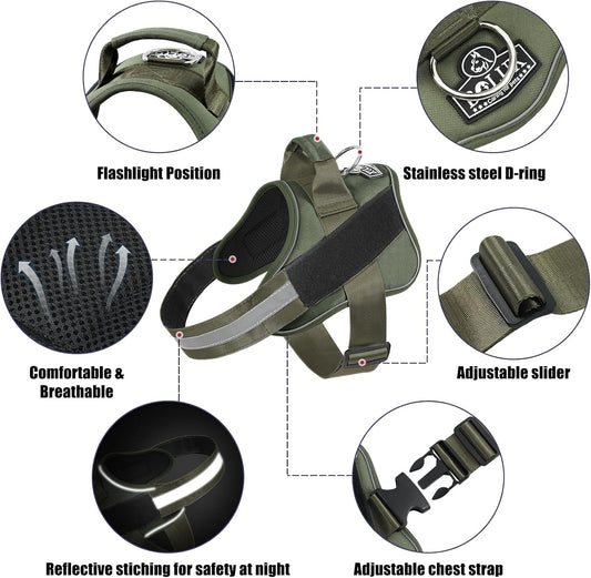 OneTigris No Pull Tactical Dog Harness for Large Dogs, Mesh Design Dog Vest Harness Breathable Military Dog Molle Vests with Handles, Service Dogs Vest Harness for Walking Hiking Training
