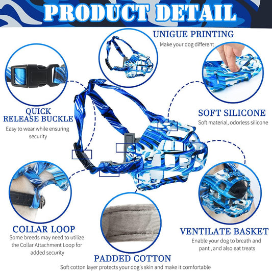 Dog Muzzle, Soft Air Mesh Muzzle for Small Medium Large Dogs Anti Biting Barking Chewing Scavenging, Breathable Adjustable Loop Pets Muzzle with Front Opening Design Allows Panting Drinking (Blue,XL)