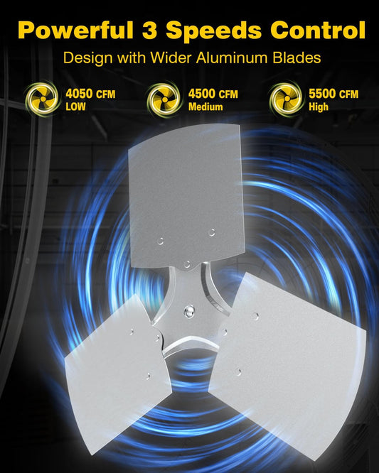 VENTISOL 20 Inch Wall Mount Fan Oscillating, 5500 CFM High Velocity Industrial Fans with 3 Speeds for Garage, Shop, Warehouse, Workshops, Cover Patio, ETL Listed
