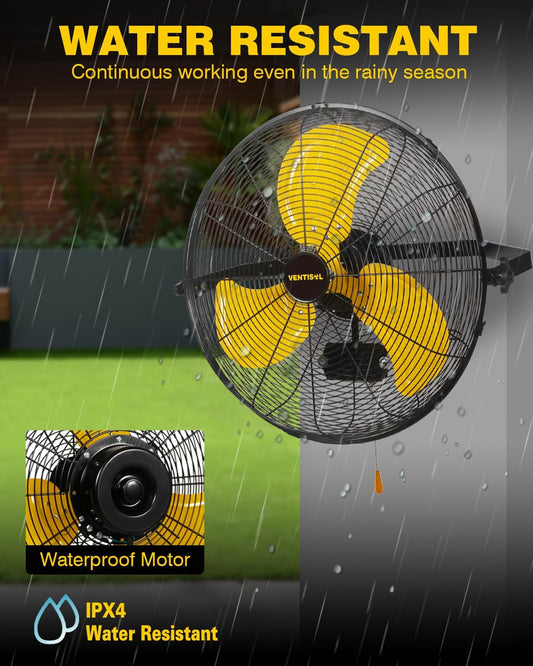 VENTISOL 20 Inch Waterproof Wall Mount Fan, High Velocity 3-Speeds 4650 CFM Heavy Duty for Home, Workshop, Industrial, Barn, Greenhouse, ETL Listed