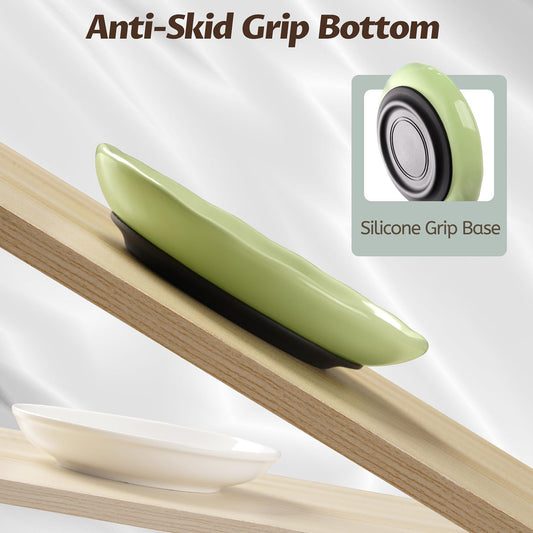 Ceramic Cat Food Bowls - 4 Pack Shallow Plates for Wet Food, Whisker-Friendly Feeding Dish with Non-Slip Silicone Base, Microwave & Dishwasher Safe for Indoor Cats & Kittens