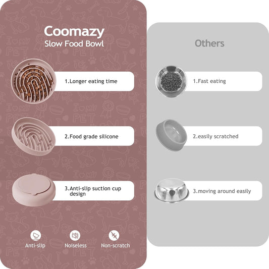 Coomazy Large Silicone Slow Feeder Dog Bowls, Interactive Puzzle Toy for Pets Food Training, Keeps Dogs Busy, Prevents Puppy Overeating (Dusty Pink, Large: 3.2Cup)