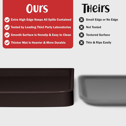 DogBuddy Dog Food Mat – Waterproof Dog Bowl Mat for Food and Water, Silicone Pet Feeding Mats for Floors, Non-Slip Placemat with High Edges for Dogs Bowls, Puppy Essentials (S: 19" x 12", Coffee)