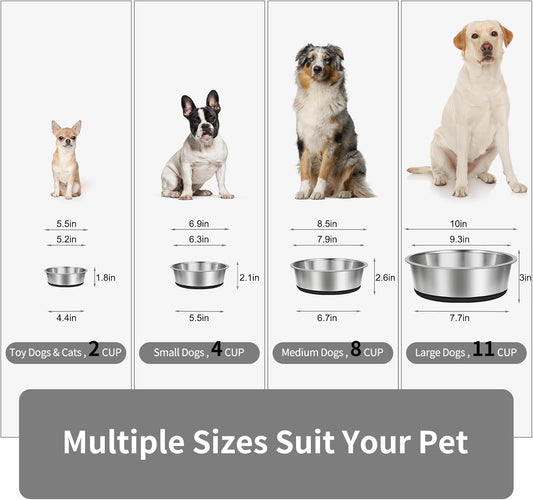 Taglory 11 Cup Stainless Steel Dog Bowls Set of 2 for Food and Water, Silicone Base Anti-Slip, Rust Resistant, Extra Thick Metal Bowls for Large Dogs, 84oz, Gray