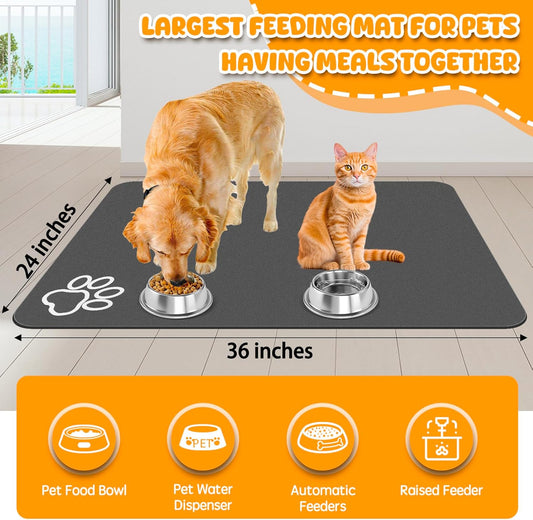 Dog Food Mat, 36" x 24" Extra Large Absorbent Dog Mat for Food and Water, Non Skid Cat Bowl Mat, No Stains Quick Dry for Pet Water Dispenser Pet Supplies for Messy Drinkers