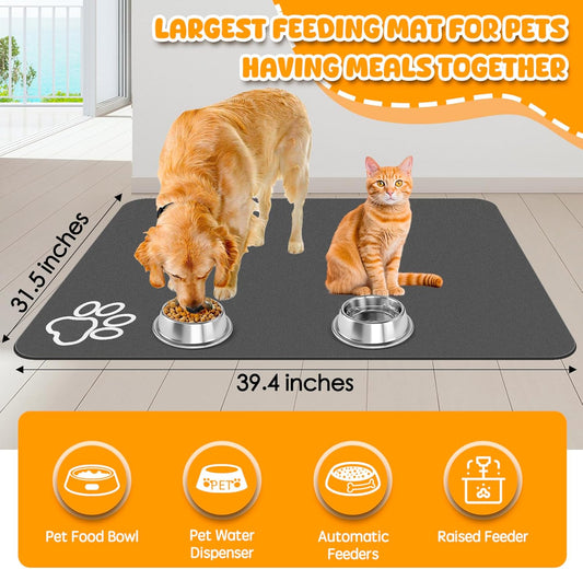 Dog Food Mat, 39.4"x31.5" Largest Absorbent Dog Mat for Food and Water, Non Skid Cat Bowl Mat, No Stains Quick Dry for Pet Water Dispenser Pet Supplies for Messy Drinkers