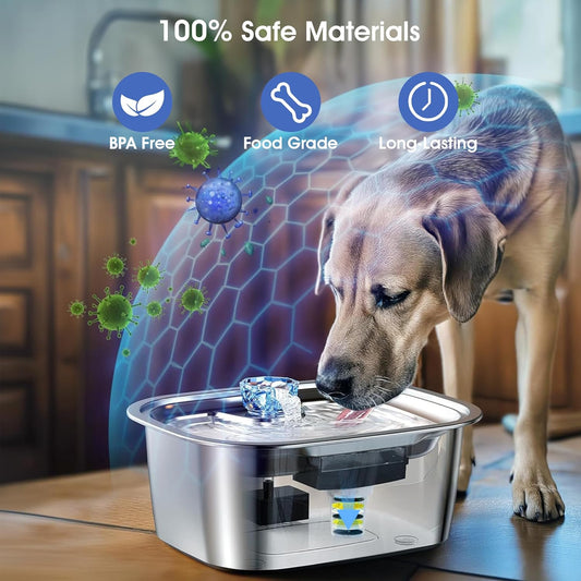 Large Dog Water Fountain 14L/3.7Gal, Stainless Steel Pet Fountain for Large Dogs and Multi-Pets, with Window & Extra Wide Drinking Area, Square Design Enlarges Capacity & Saves Space (Pump)