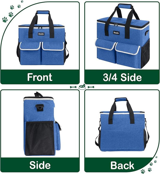 Large Pet Travel Bag Organizer - Dog & Cat Tote with Food Containers, Bowls, Feeding Mat, Perfect for Camping, Hiking (Multi-Pocket Design)