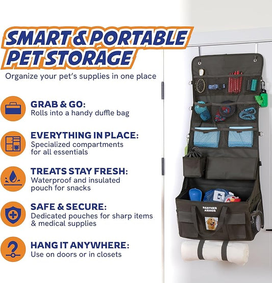 Panther Armor Dog Travel Bag Hanging Dog Organizer & Pet Storage Tote Bag for Supplies | Waterproof Door Storage & Closet Organizer | Food & Treat Container for Travel Accessories
