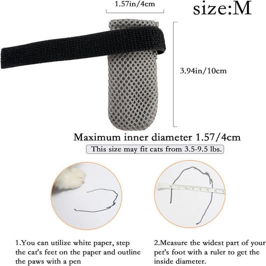 8 Pack Cat Mittens to Prevent Scratching, Adjustable Breathable Mesh Cat Booties & Claw Covers - Anti Scratch Gloves for Bathing, Nail Trimming - 4 Black & 4 Grey, Paw Inner Diameter up to 1.57 Inches