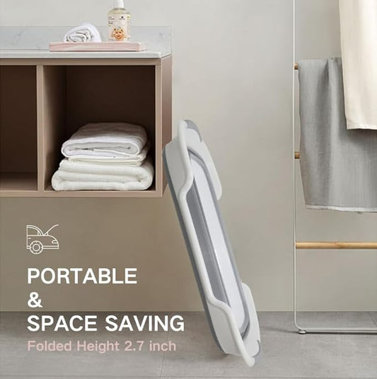 Collapsible Pet Bathtub with Water Drain Plug, Foldable Bathtub for Puppy Small Dogs Cats, Portable & Space Saving Design, BPA Free, Grey