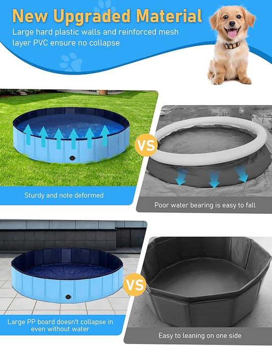 Foldable Dog Pool, Lexda Hard Plastic Shell Pet Swimming Pools for Large Dogs, Collapsible Plastic Pet Pool, Portable Bathing Tub for Dogs (79x12inch)