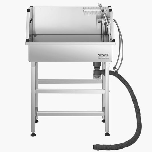 VEVOR Stainless Steel Dog Washing Station, 34 inch Pet Grooming Tub w/Faucet & Showerhead & Soap Holder & Play Balls Simple Dog Bathtub for Multiple Pets, Home Washing Sink