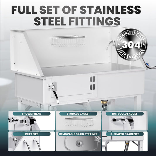 Professional 46" Dog Washing Station, Stainless Steel Dog Bathing Station, Height Adjustable Dog Wash Station, Storage Drawer, Upgrade Parts, Home, Commercial (Right Step)