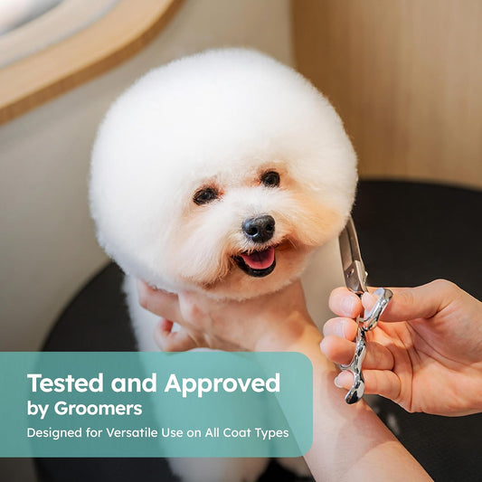 GEMEK Pet Cat Dog Grooming Scissors Set 4 Pieces Stainless Steel Professional Pet Trimmer Kit - 7.5 inch Straight Cutting, Thinning Shears, Curved, Grooming Combs