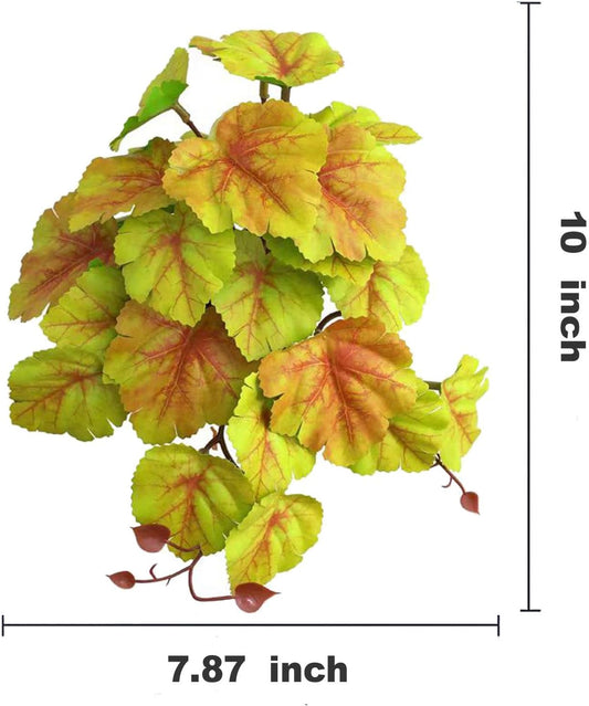 Reptile Plants for Terrarium, Amphibian Habitat Decor Artificial Hanging Plants with Suction Cup, Artificial Plants for Gecko Chameleon Snake Tortoise Tank Accessories. 2 Pack (FL-7)