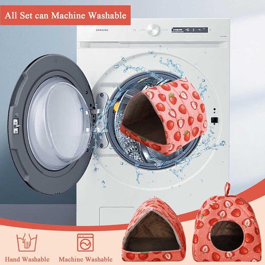 JSPYFITS Guinea Pig Hideout, Washable Guinea Pig House Cozy Small Pet Bed for Small Animal Bunny/Rabbit/Hamster/Chinchilla Accessories Pink Strawberry