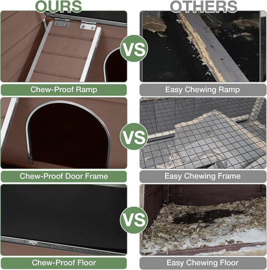 GUTINNEEN Outdoor Cat House Wooden Rabbit Hutch Outside Feral Cat Shelter Bunny Cage Guinea Pig Habitat Weatherproof(AIR12)