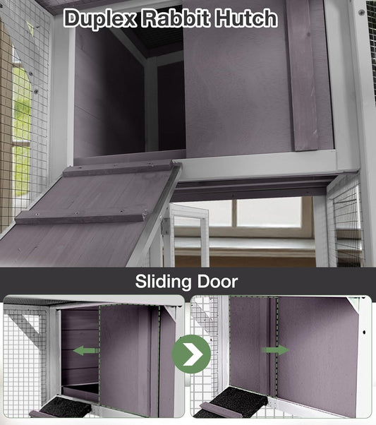94''L Rabbit Hutch Outdoor Chicken Coop with Run, Wooden Indoor 2 Story Bunny House with Waterproof Roof, Pull Out Tray, Guinea Pig Rabbit Duck Cage for Small to Medium Animals and Pet Lover, Gray