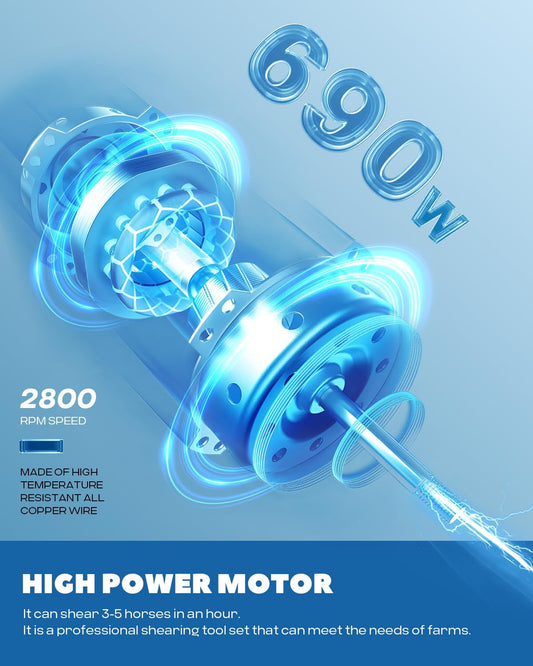 Horse Clippers 690W 28000RPM, Heavy Duty Horse Grooming Kit, Professional Livestock Clippers with 6 Speed Adjustable for Shaving Horse Pony Cattle Goat Large Dogs and Others
