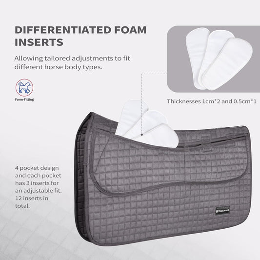 Tackmore Western Saddle Pad Adjustable with Side Pockets and Foam Inserts Shock-Absorbing Riding Pad