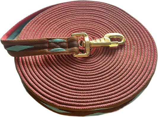 Soft Padded Lunge Line Rein Lead for Horses 27ft Looped Handle Swivel Clip (Brown/Beige)