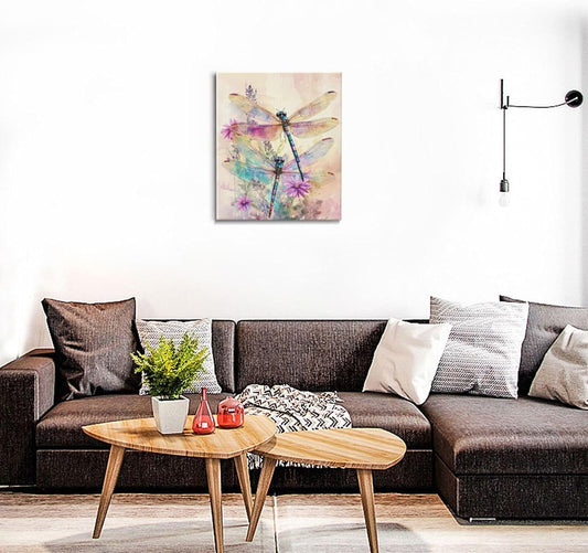 Dragonfly Bathroom Pictures Wall Art, Floral Bathroom Wall Decor, Framed Painting Canvas Artwork for Bedroom Living Room Decorations 24"L x 20"W