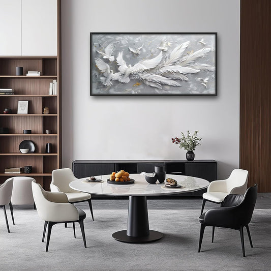 Quorin Feather Dove Bird Large Wall Art White Gray Holy Wings Pictures Peaceful Birds Flying Wall Decor Canvas Print Painting Artwork for Bathroom Living Room Bedroom 60L x 30W