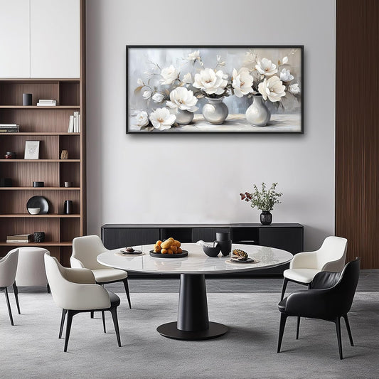 Large Farmhouse Floral Wall Art for Living Room, Framed Oversized White Flower Vase Wall Decor Grey Floral Canvas Painting Pictures Modern Artwork for Bathroom Bedroom Office Dining Room 60"x30"