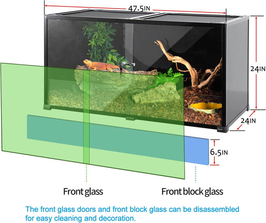 REPTIZOO Large 120 Gallon Reptile Terrarium, Reptile Tank 48" x 24" x 24" Black-Tinted Eco-Terrarium
