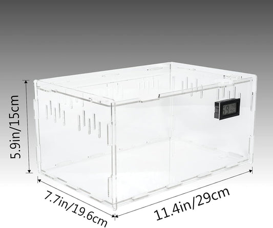 BETAZOOER Reptile Terrarium Breeding Tank Acrylic Reptile Feeding Box with Temperature Hygrometer (11.4"x7.7"x5.9")