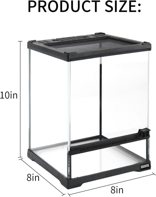 Mini Reptile Glass Terrarium Tank 8"*8"*10" Full View with Front Opening Door,Amphibians Enclosure Habitat Cage for Leopard Gecko Tarantula Young Lizard Hermit Crab Frog Insects Breeding
