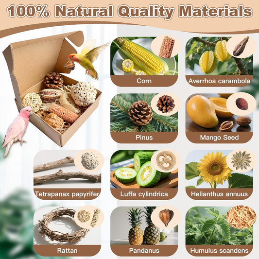 Colorful Bird Foraging & Shredding Toys Box – Safe Bird Toys for Parakeets, Cockatiels, Conures & Small Birds, Perfect for Spring and Summer