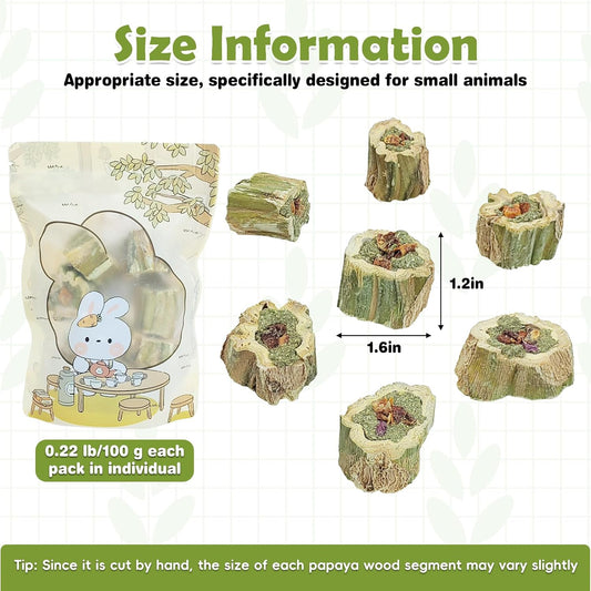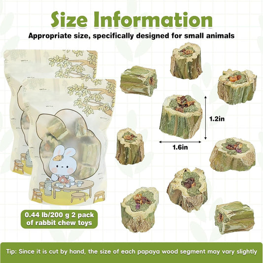 Fhiny Rabbit Chew Toys, 8 PCS 2" Natural Papaya Wood Chew Sticks Guinea Pig Treats for Dental Care Bunny Treats for Rabbits Small Pet Molar Snacks for Bunny Guinea Pig Chinchilla Hamster Gerbil