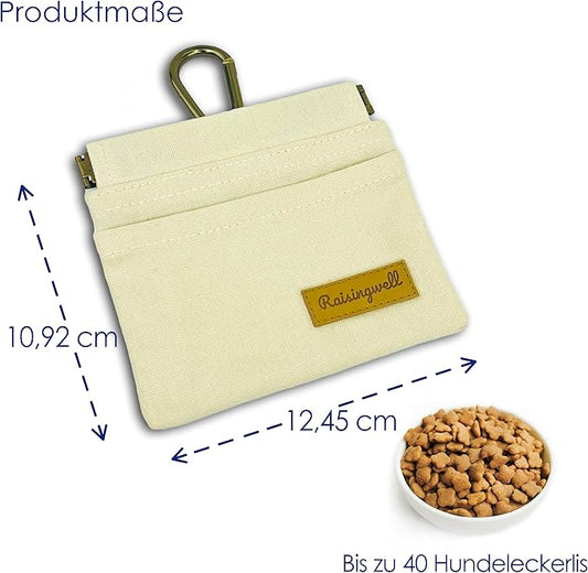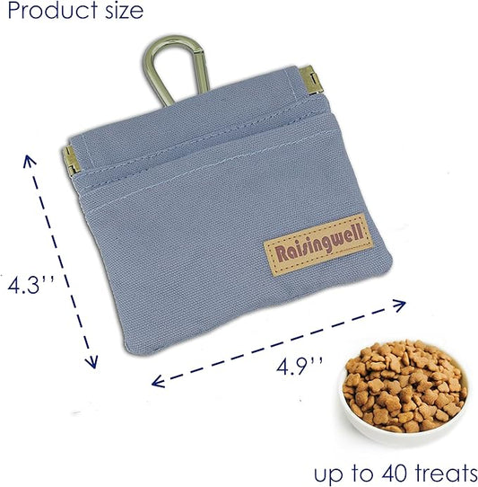 Dog Treat Pouch, Small Cotton Pocket Sized Training Holder, Hand Free Walking Fanny Bag with Carabiner, Self-Closing Pet Feed Snack Reward, Behavior Aids for Puppy Travel or Outdoor Use