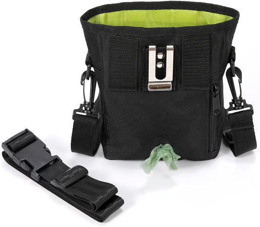 Dog Treat Pouch with Collapsible Dog Bowl, Training Clicker and Poop Bags, Treat Pouches for Pet Training, Built-in Poop Bag Dispenser, Waist Belt Clip, Puppy Treat Pouch Magnetic Closure - Black