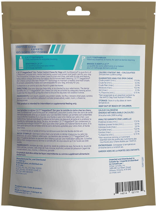 Virbac C.E.T. VEGGIEDENT Zen Tartar Control Chews for Dogs - Small