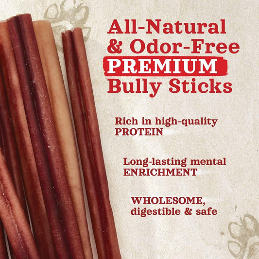 Natural Farm Odor-Free Bully Sticks (4-8”, 8oz) All-Natural Long-Lasting Chews, 100% Beef Pizzle, Grass-Fed, Grain-Free, Hormone-Free, Protein for Muscle Development & Energy, Perfect for Medium Dogs