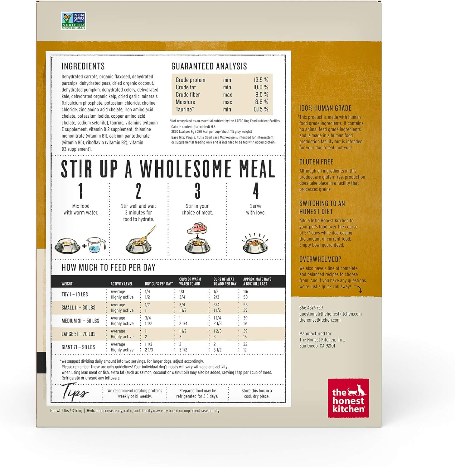 The Honest Kitchen Human Grade Dehydrated Grain Free Veggie, Nut & Seed Base Mix for Dogs - 7 Pound Box (Makes 12 Pounds)