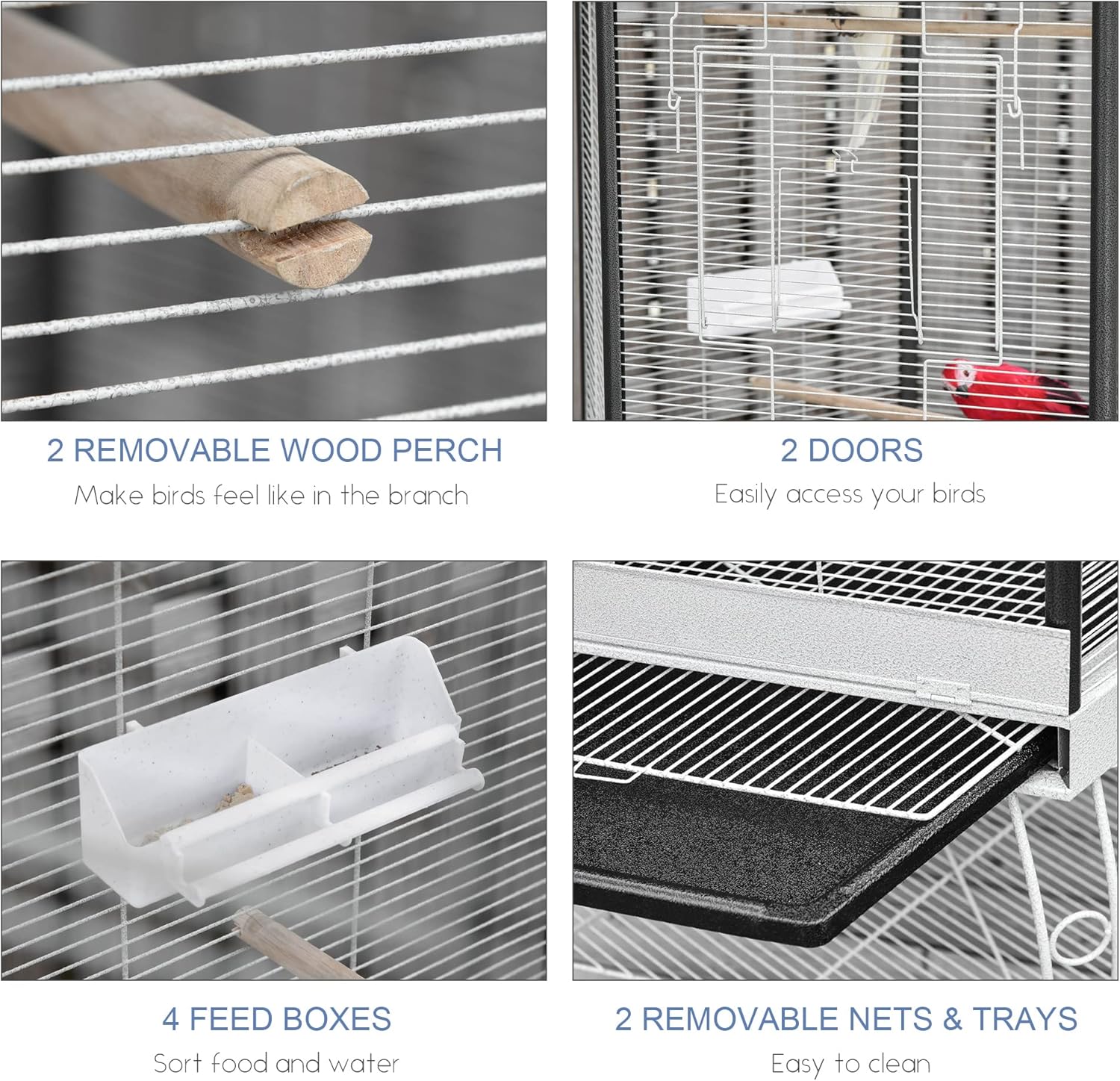 - Durable: Built with durable iron with a pet-friendly finish, this cage will provide years of use and enjoyment. The cage is covered in 0.5-inch space metal wire to keep your birds away from escaping and outside predators.