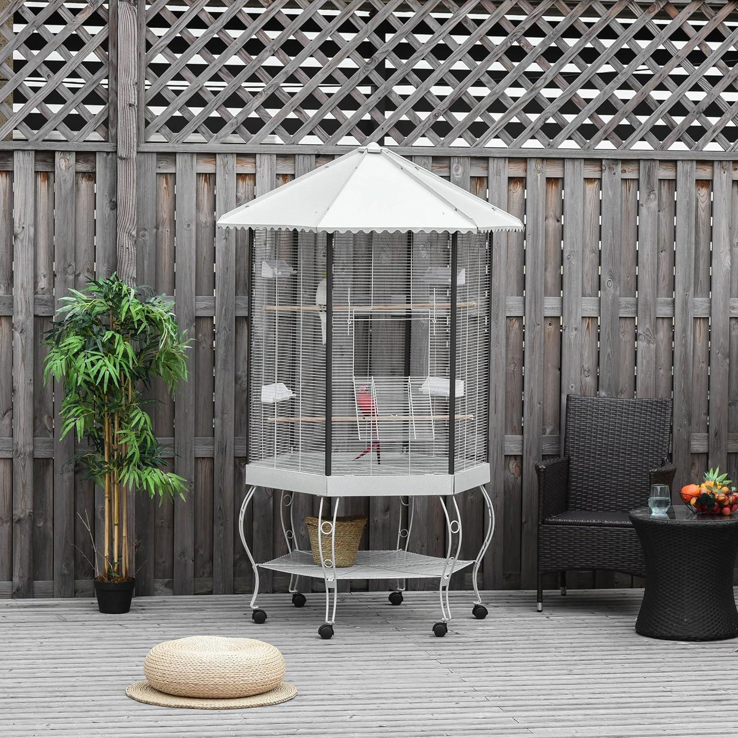 PawHut 44" Hexagon Covered Canopy Portable Aviary Flight Bird Cage With Storage