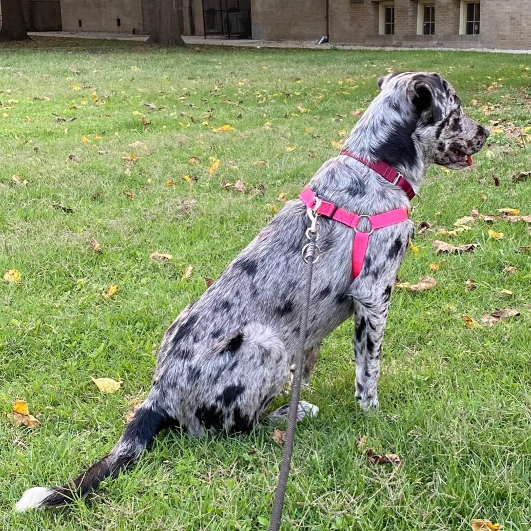 PUPTECK No Pull Dog Harness Soft Adjustable Basic Nylon Step in Puppy Vest Outdoor Walking with ID Tag Medium DeepPink