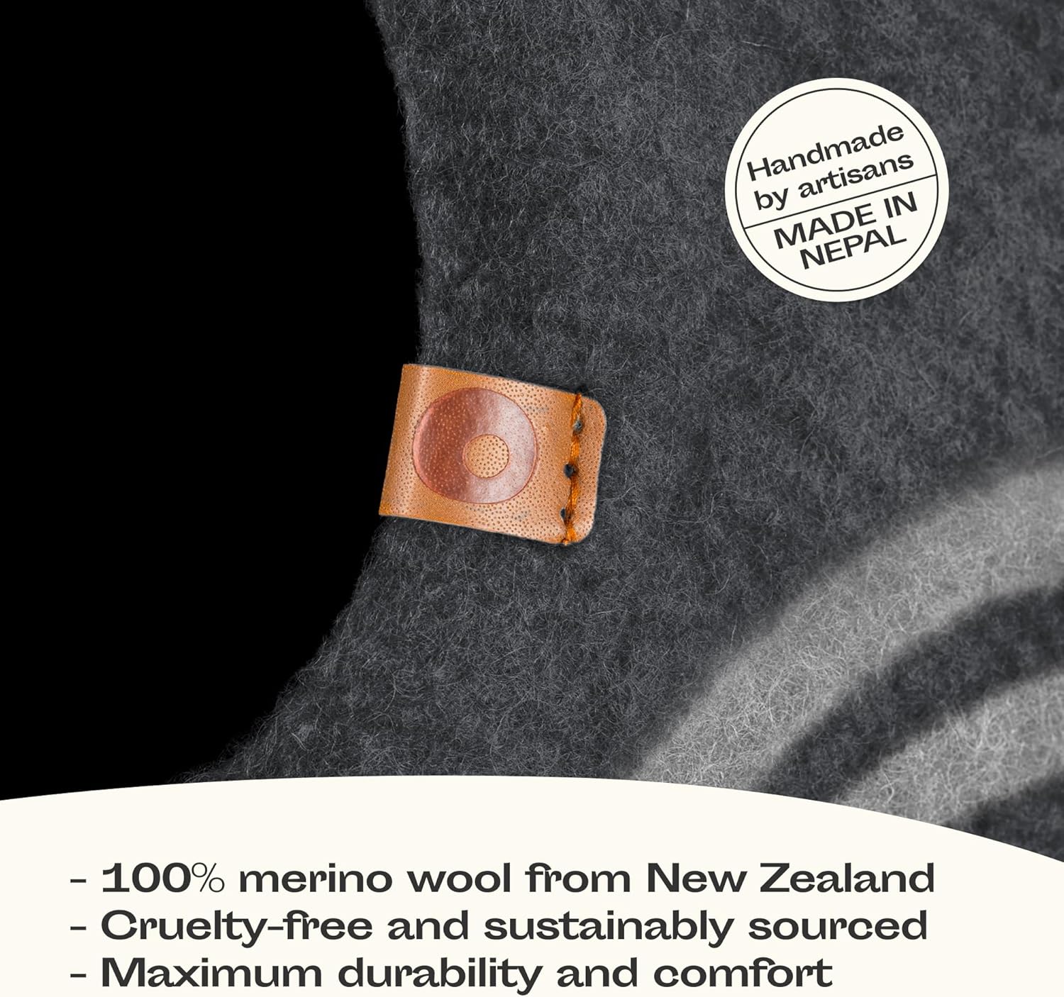 MEOWFIA Cat Cave – Premium Felt Cat Bed for Indoor Cats, Handmade 100% Merino Wool (Large, Dark Grey)