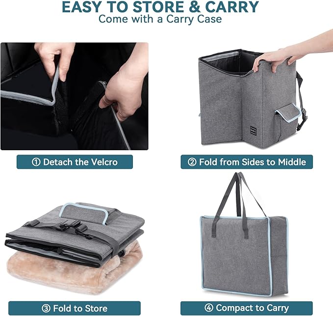 - Easy to use: Quick to install and uninstall in car's front seat, sturdy construction ensures the whole seat is in shape, collapsible design makes dog car seat easy for storage if not used. There are storage bags that can hold pets' daily necessities on the go. It also has an adjustable buckle design, it can be quickly installed on most standard car seats, suitable for a variety of car types.