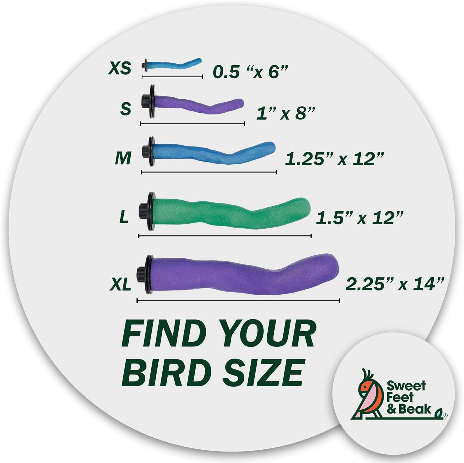 - Grooming Bird Perch: The SF&B Safety Pumice perch for birds is designed with a smooth top for tender bird feet and textured sides to keep nails naturally trimmed; this plastic and pumice bird cage perch is ideal for Conures, Cockatiels, and other similar size birds