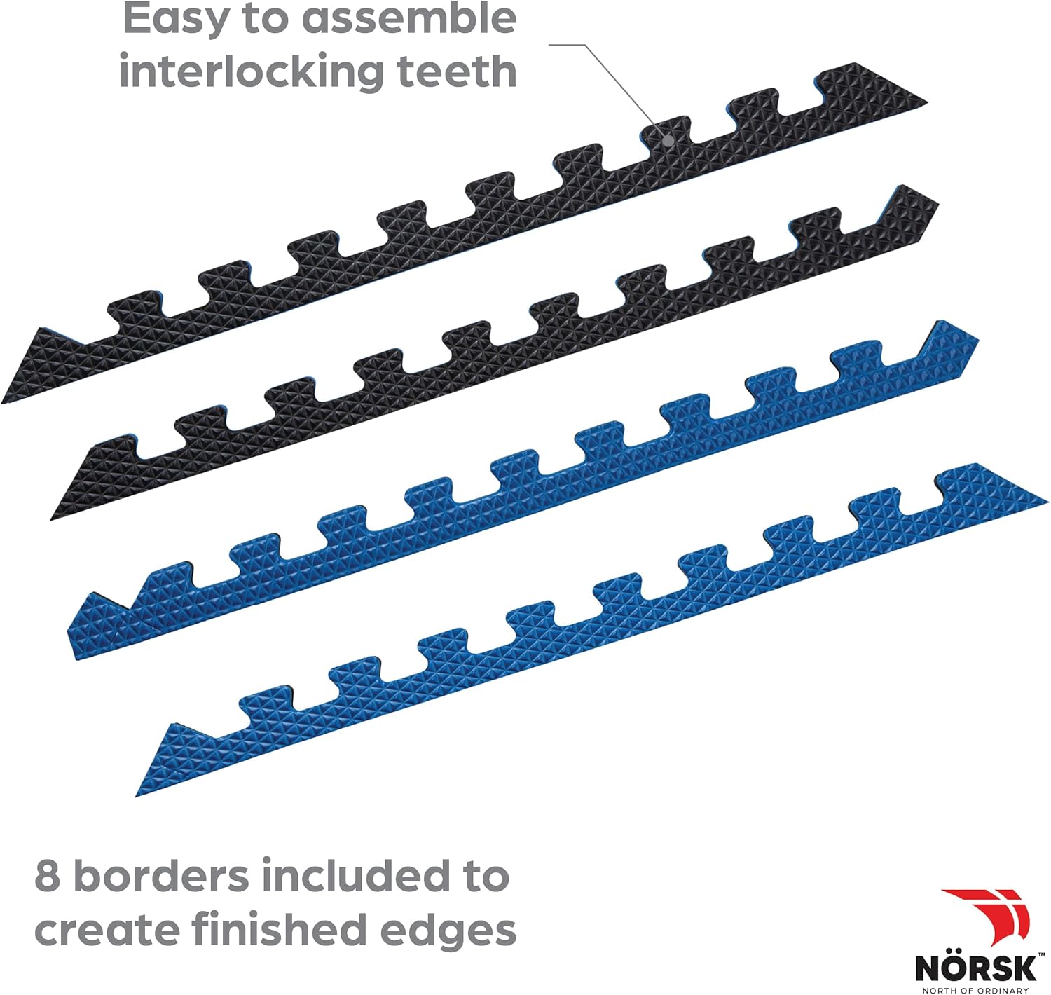 Norsk Reversible Gym Exercise Mats 3/4" Thick EVA Interlocking Foam Tiles, Perfect Home Gym Flooring, 24 Tiles & 48 Trim Pieces, 96 Sq. Ft. Reversible, Dazzling Blue/Black