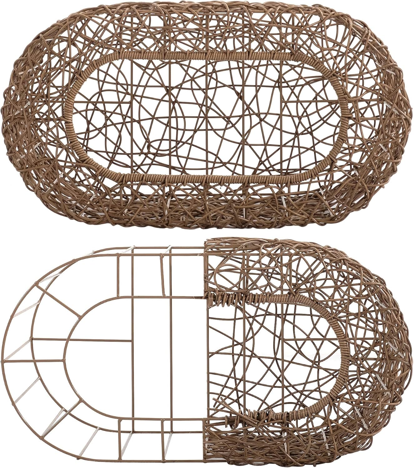 - CAT CAVE BED WITH STURDY METAL FRAME: Built with metal backbone frame and loose woven rattan looks like a work of art, cat cave bed can shield pets cats and kitty inside from harms way