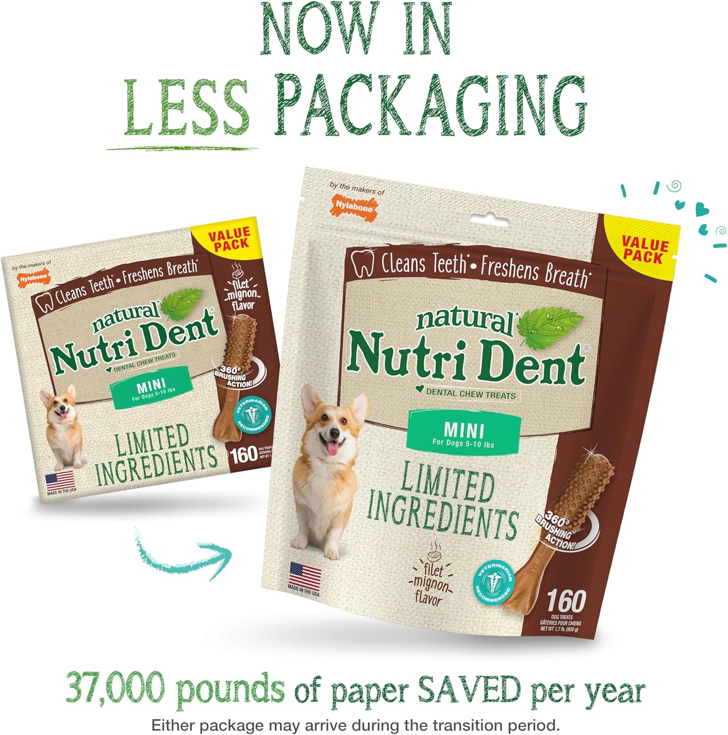 - Each natural dental chew for dogs includes 360-degree cleaning nubs that reduce plaque and tartar