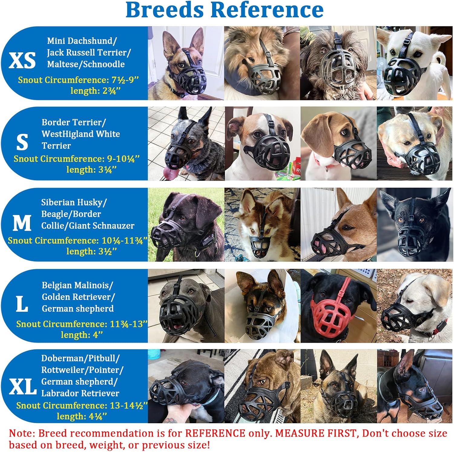 - Dog Muzzle for EXTRA LARGE Dogs (Cir: 13''-14½'', Length: 4¼''): Muzzle for xl large sized dog fits for Doberman, Pitbull, Rottweiler, Pointer, German shepherd, Labrador Retriever, etc. but not for highly anxious dogs and flat-faced dogs like Pug. Please refer to the pictures or videos to measure the snout cir and length before buying the xl basket muzzle.